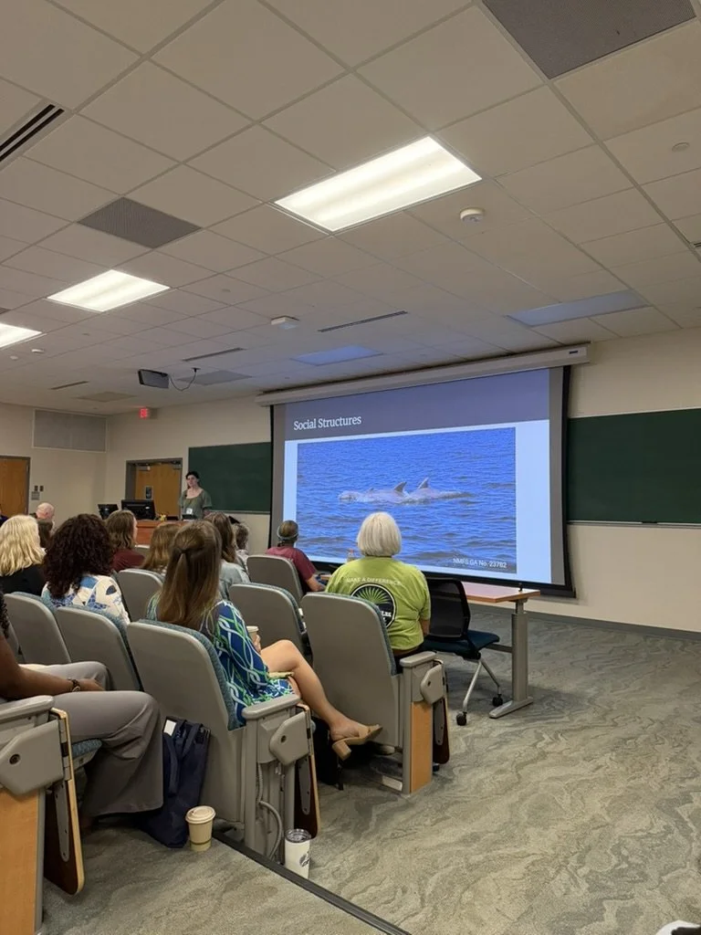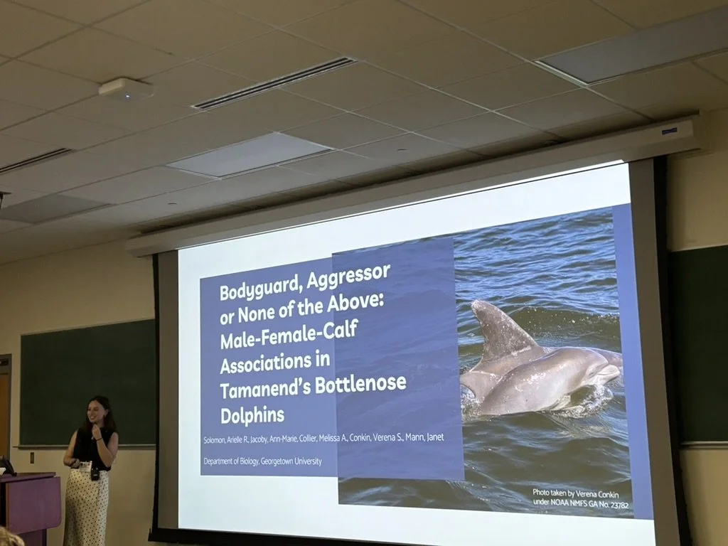 Arielle Solomon presented her research about male-female-calf associations. Solomon found that our dolphins are significantly sexually aggregated and that males are closer associated with newborn calves than older calves.